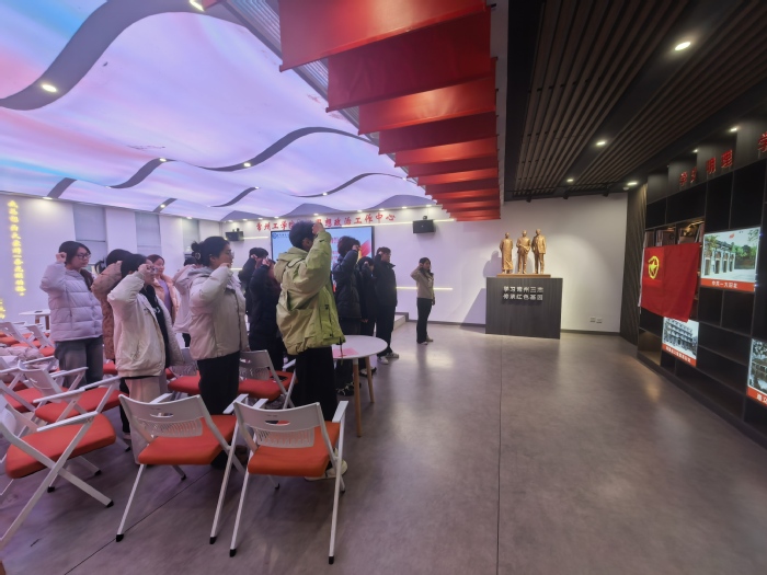 12月30日,电气信息工程学院团委在常州三杰情境教室与常州三杰文化广场举行新团员入团宣誓仪式。学院团委副书记杨雪、学生团委副书记梁海霞、团委组织部部长彭楚妍及20名新团员共同参与本次活动。