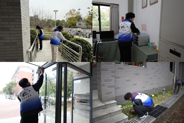 3月5日上午8时,志愿者们准时集结,主动对接宿管阿姨,从楼道台阶到公共大厅,从扶手门窗到卫生死角,同学们认真清扫、用心擦拭,在忙碌的身影与汗水中,亲身体验公寓日常维护的辛劳,也为阿姨们分担了日常工作。
