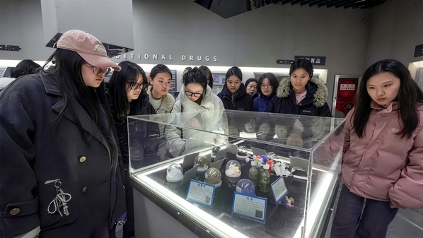 在《毒品知识》展区,讲解员结合图文资料与实物模型,详细介绍了毒品的由来、发展历程以及常见种类。从传统的鸦片、海洛因,到合成的冰毒、麻古,再到伪装成“奶茶粉”“跳跳糖”“邮票”等形态的新精神活性物质,每一种毒品的特性与危害都被逐一剖析。同学们在认真聆听的同时,也从视觉设计的专业角度展开思考,纷纷提出创意构想:“这些新型毒品的包装极具迷惑性,我们可以用对比强烈的海报设计,将其美丽外表与致命危害并置,通过视觉冲击力让人们一眼看清真相。”“可以以‘毒品伪装’为主题,创作系列警示插画,用夸张的视觉语言揭露毒品的欺骗性。”这些现场迸发的创意,将成为后续项目化教学的核心灵感来源。