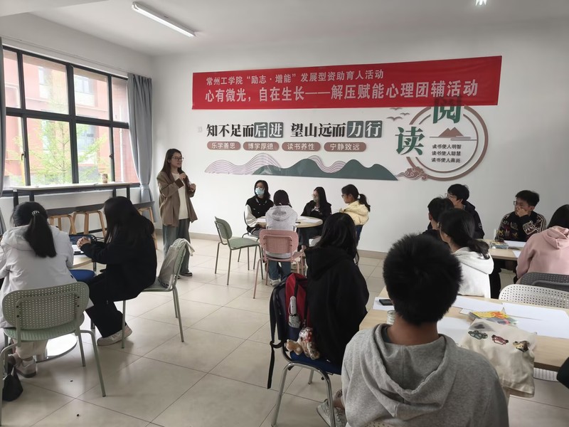 为深入推进大学生心理健康教育工作,切实关心关爱家庭经济困难学生,培育积极健康的心态,助力学生全面成长成才,4月14日,由学生工作处主办、伴随学社承办的“心有微光自在成长——解压赋能心理团辅活动”顺利开展。本次活动是学校2026年发展型资助育人“励志·增能”系列活动的重要组成部分,特邀学校心理健康教育与咨询中心戚月月老师担任主讲,面向家庭经济困难学生开展针对性心理帮扶。
